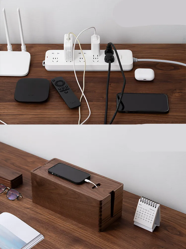 Solid Wood Desktop Wire Storage Box Light Cat Router Rack